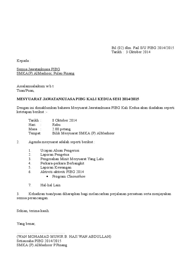 Contoh Surat Mesyuarat Ahli Jawatankuasa Pdf