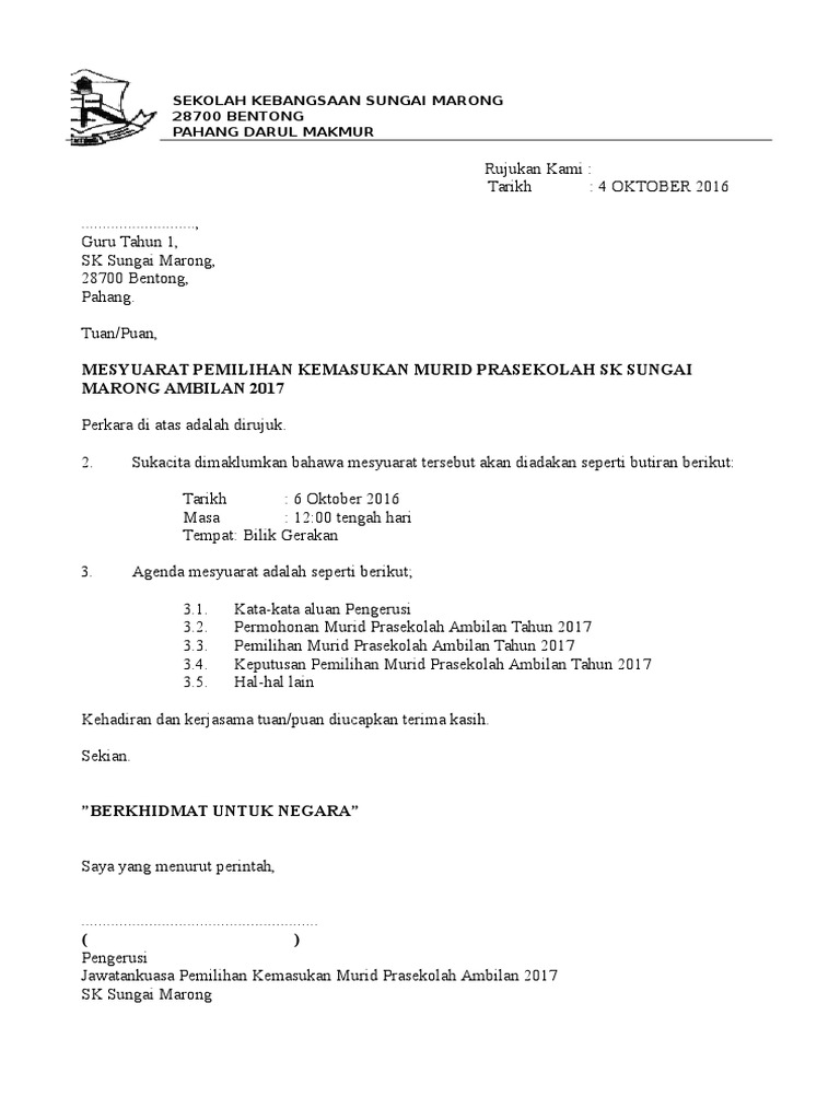 Contoh surat panggilan mesyuarat doc. Bila dah ada 2 nombor ni letih jugak la kan nak topup dua2 nombor. Surat Jemputan Ibu Bapa Mesyuarat Pibg 2015.