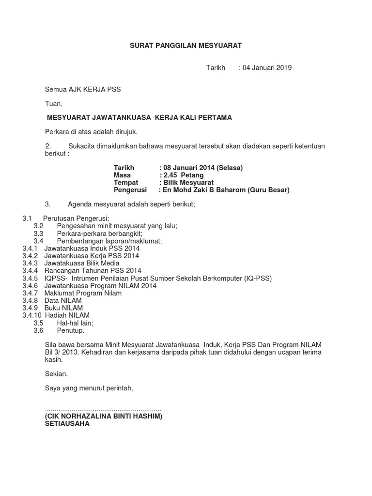 Contoh Surat Panggilan Mesyuarat Pdf