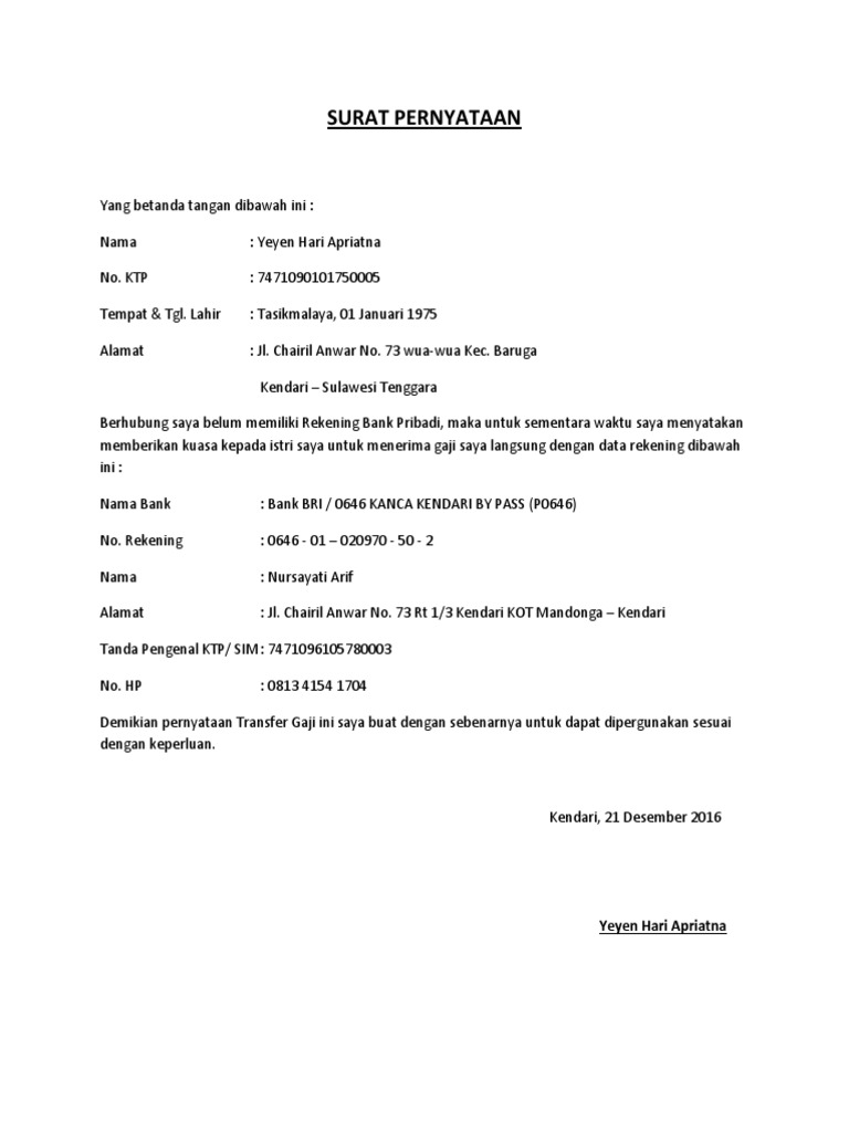 Surat Pernyataan Transfer Gaji Pdf
